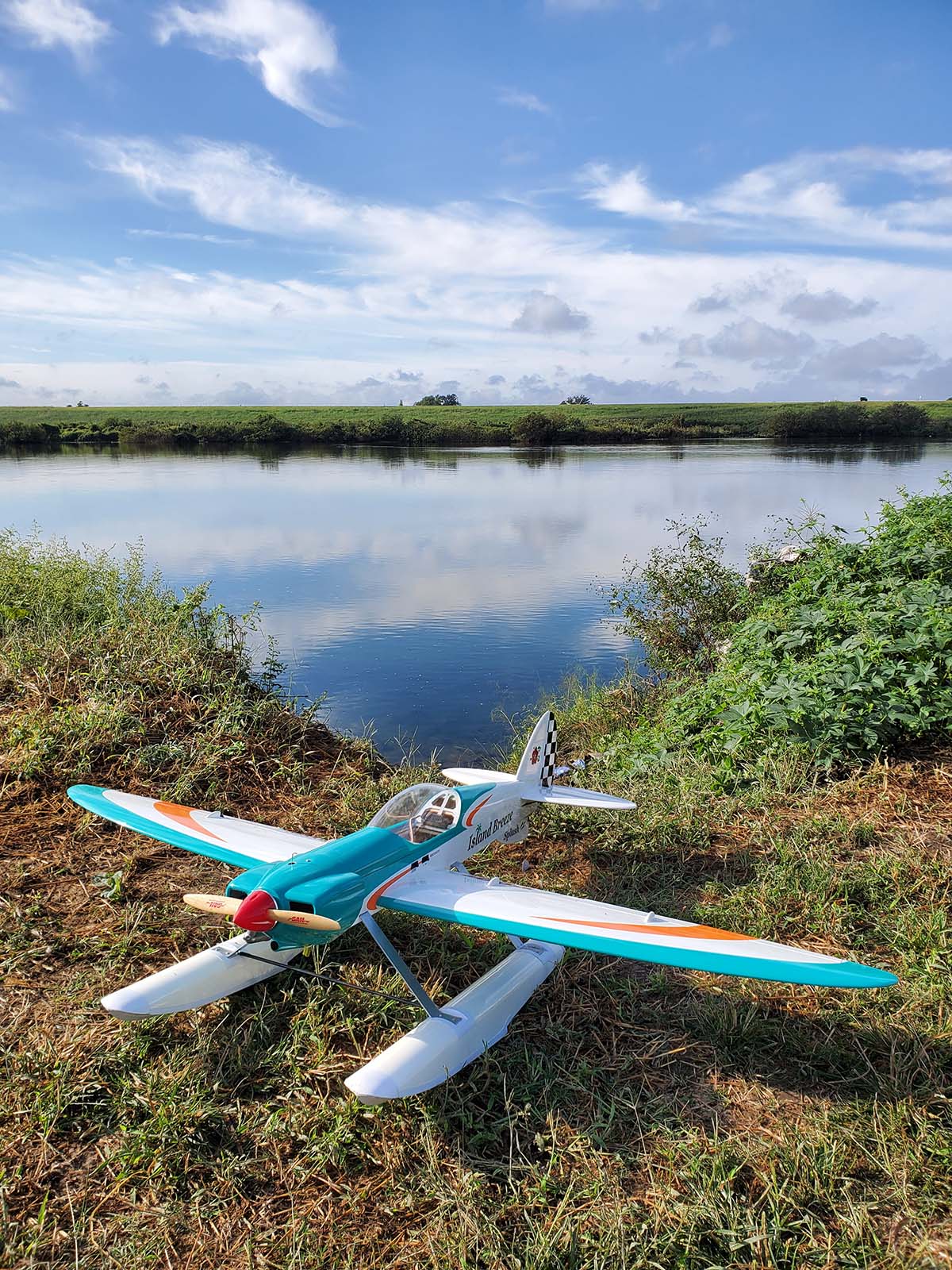 伊藤 博文 様 (コマンダー148Ⅲ) 先日電動化したコマンダー148に作ったフロートをつけて水上機に改造してみました。 離着水、飛び共に素晴らしい仕上がりとなりました。素直で安心して飛ばせる機体です! |