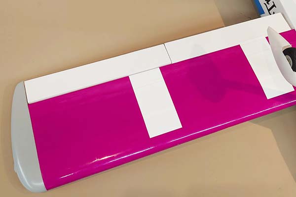 高い剛性を持ったパイプカンザシによる2分割式バルサリブ組フィルム貼り完成主翼と木製フィルム貼リ胴体の組み合わせです。